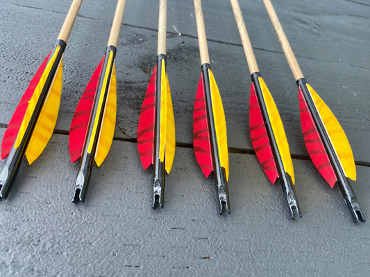 Premium Wooden Arrows, 4 Feathers - Plastic Nock (half dozen)